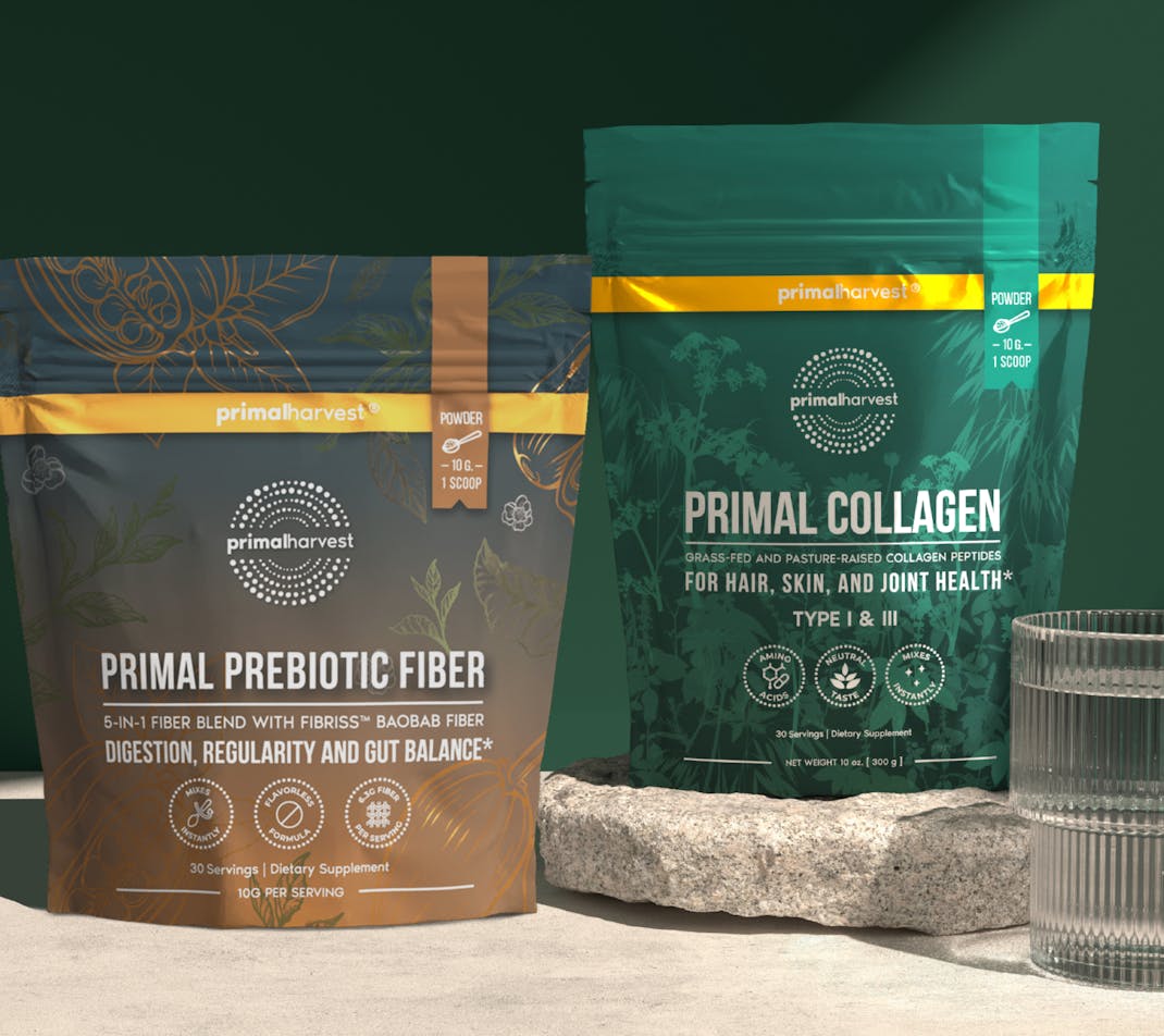 Primal Collagen supports beautiful skin, strong hair, and flexible joints while Primal Prebiotic Fiber works deep in your gut for a smooth, balanced digestion.