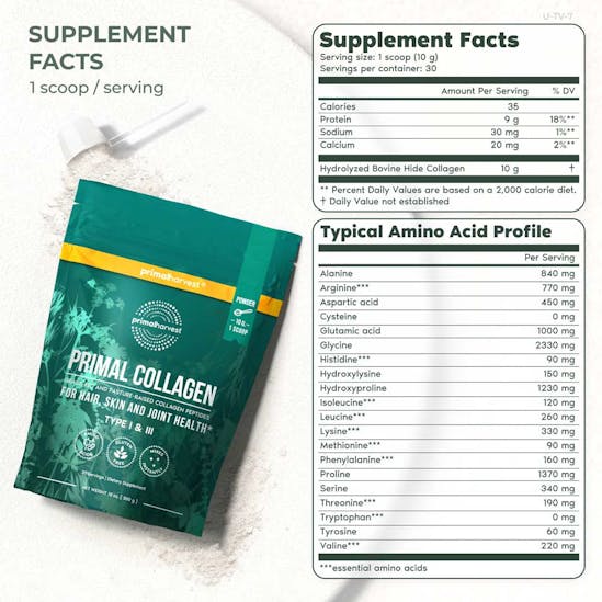 I really love Primal Harvest Primal collagen. I've been taking it for about six months now, and I really noticed a difference. I think that Primal collagen is amazing and I would recommend it to anyone.
