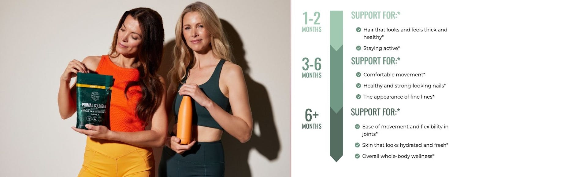 Everybody is unique and we all respond differently to changes in our wellness routines. Like with any healthy habit, commitment is key to seeing the biggest results. Here are some examples of how taking collagen consistently may look for different people:*